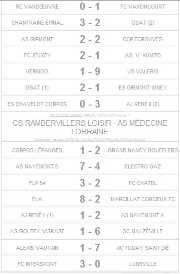 - 17/11/2009 : huitième de finale de la coupe des Vosges :